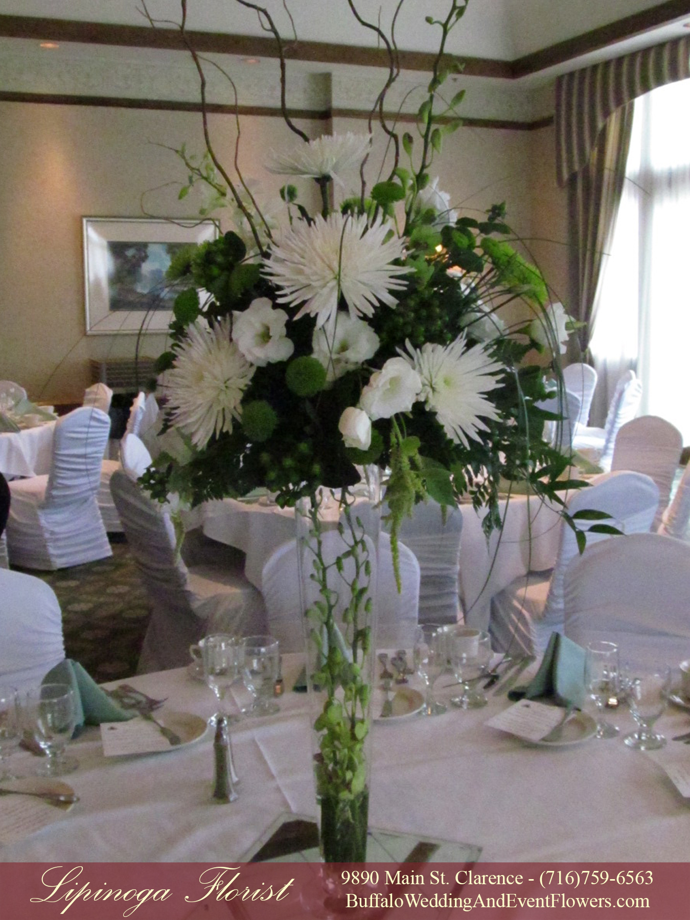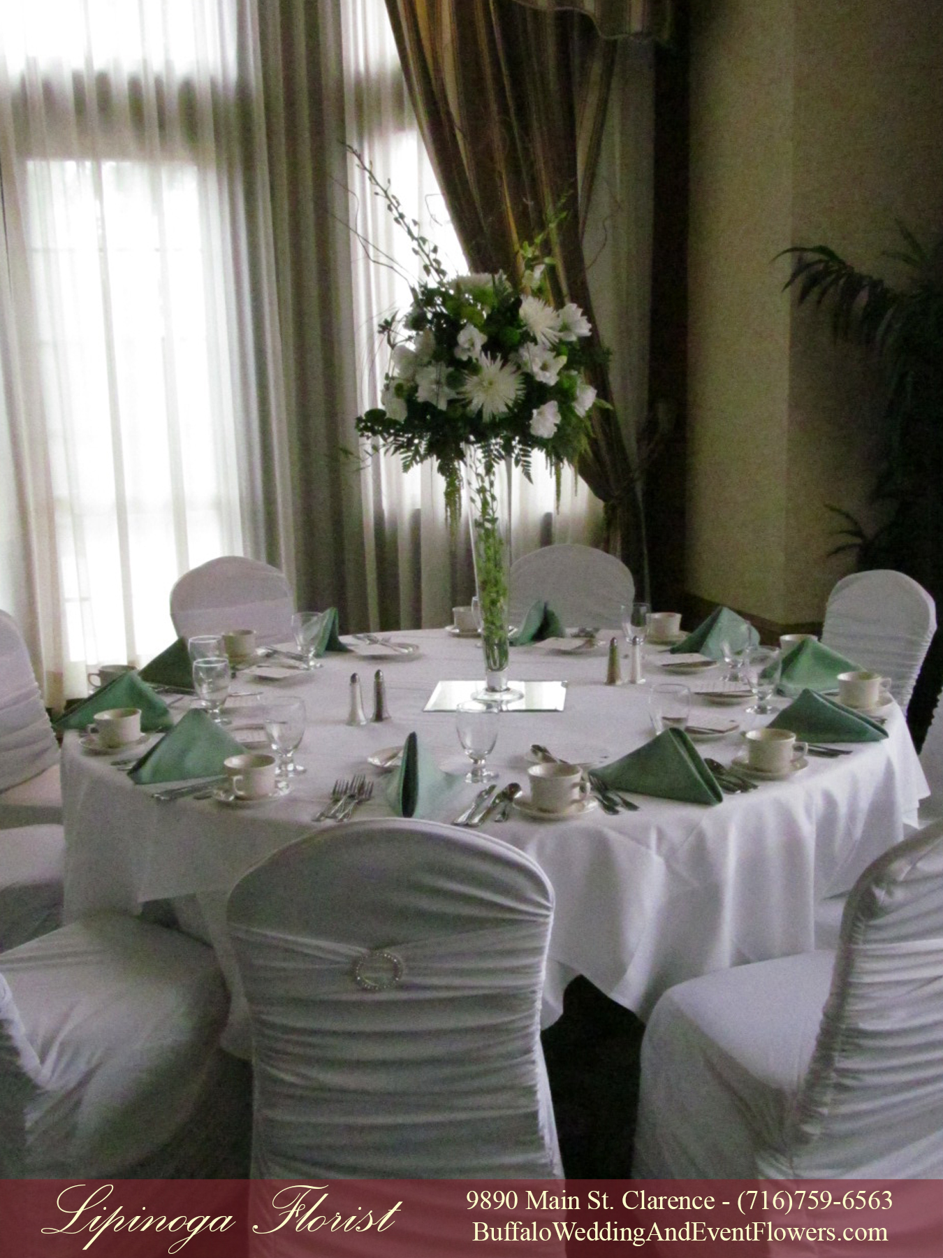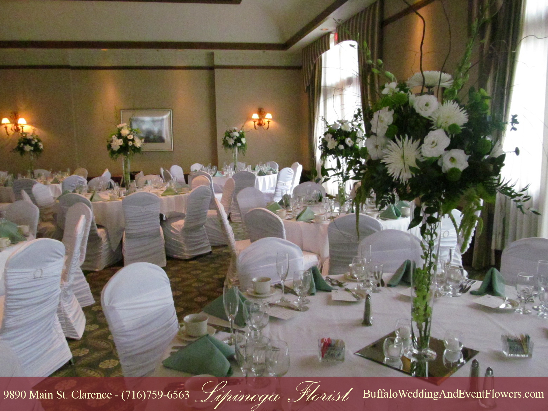The captain’s table for the wedding party was lined with multiple centerpieces to accentuate the length and make a statement for the honored guests and the bride and groom.