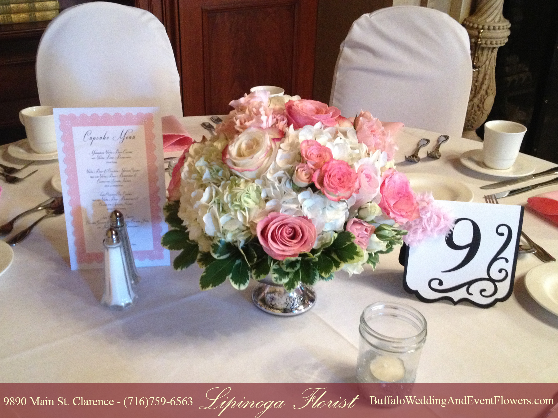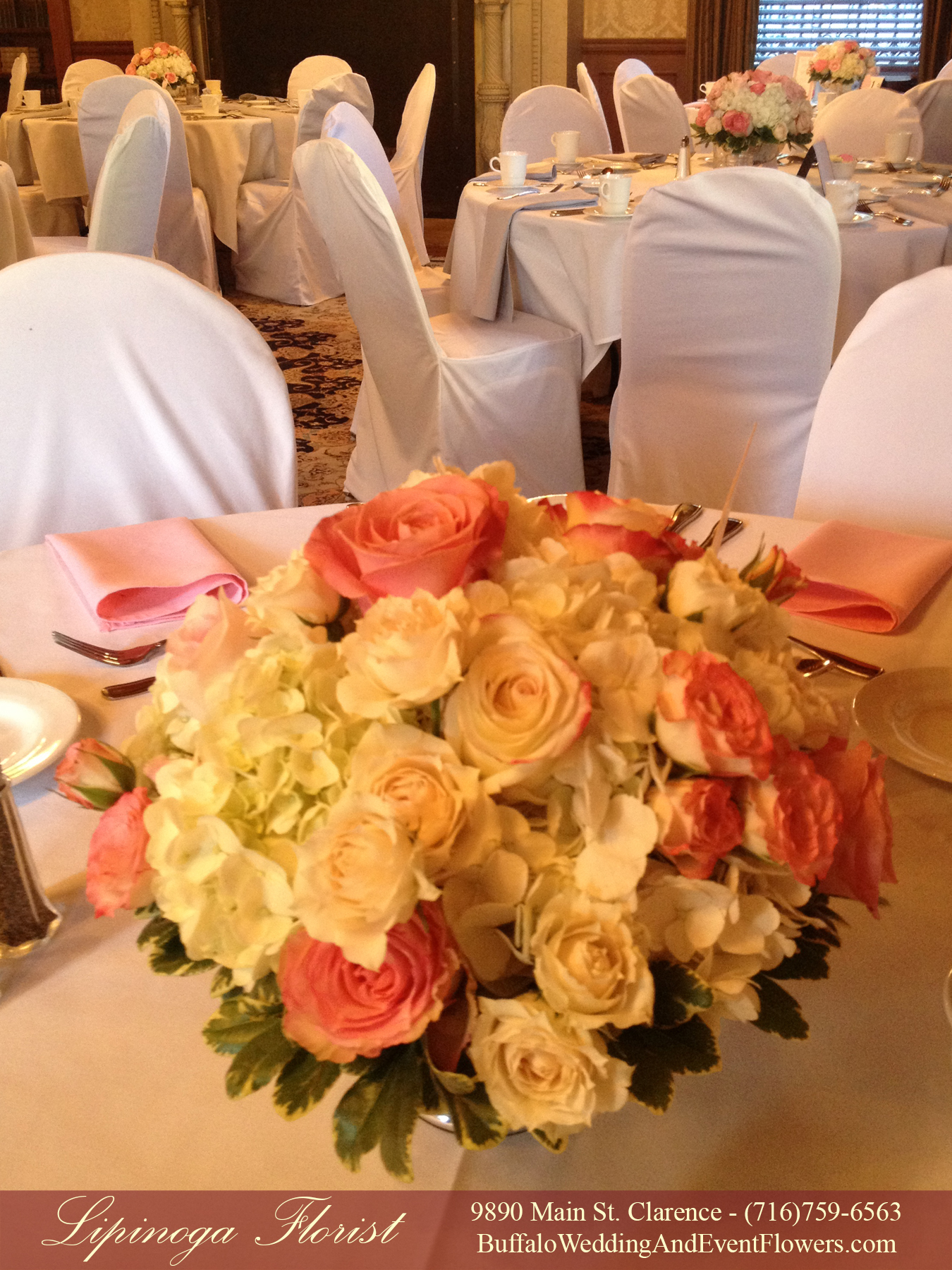 A stunning combination of pink roses and hydrangeas created a truly beautiful wedding celebration at the Butler Mansion in Buffalo, NY.