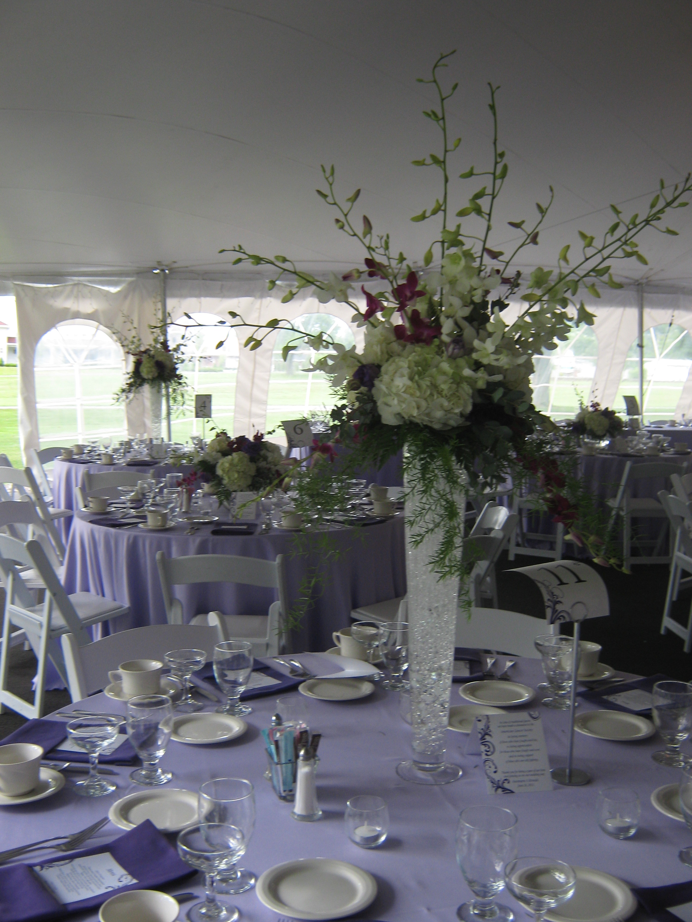The captain’s table for the wedding party was lined with multiple centerpieces to accentuate the length and make a statement for the honored guests and the bride and groom.