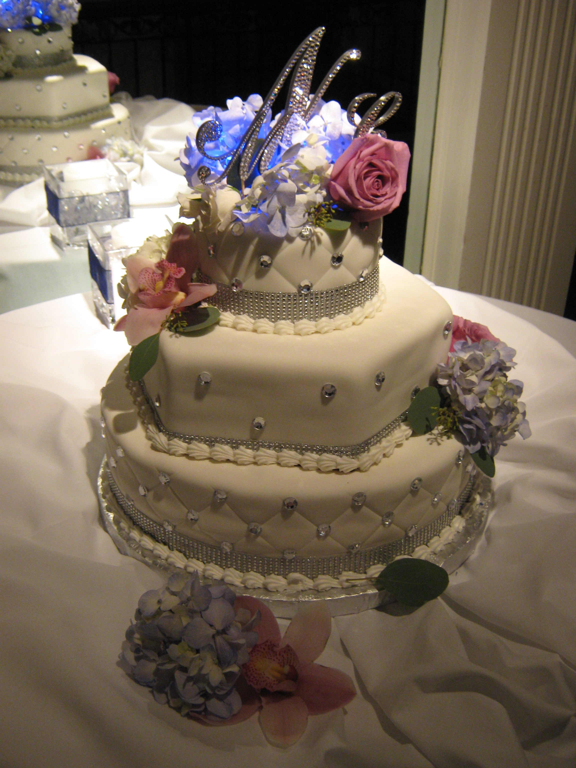 LED lights added a modern touch to the reception as well as a touch of blue. The lights and flowers accented the cake.
